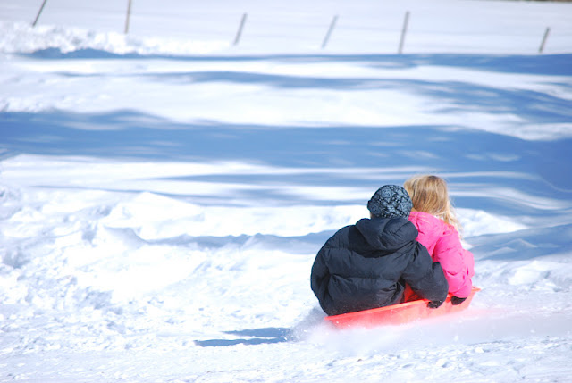 On Sunday, we did what we knew they'd have the best time doing, sledding, off some remote hill in town, without a ton of people there! Now that is our kind of fun!! The kids had a blast, it was a good size hill, a few times I thought Brynne was going to cry, but she just kept getting up and going for more!!